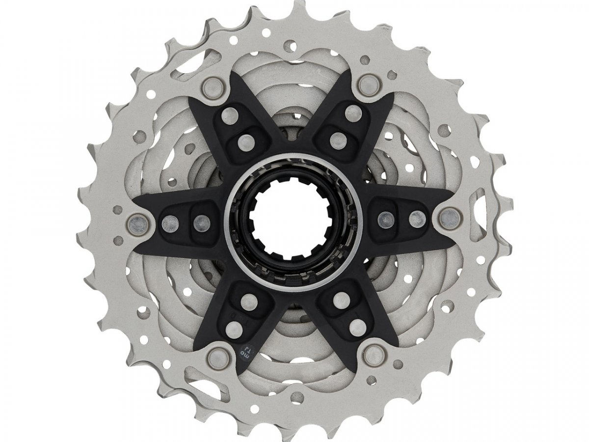 CS-R8100 - первая кассета из серии шоссейных компонентов Ultegra от Shimano, имеющая 12 звезд. В ней используется технология Hyperglide +, которая впервые была протестирована в секторе MTB и обеспечивает плавное переключение передач даже при большой нагрузке. Вы можете безопасно и мгновенно переключать передачи при вращении педалей или спринте. Градации звезд были выбраны для обеспечения высокой эффективности передачи в любых ситуациях, а также оптимального ускорения. Этому также способствуют увеличенные зубья шестерен. Особый плюс -это совместимость кассеты: CS-R8100 не только подходит для нового 12-скоростного барабана втулки, но также может использоваться с обычными шоссейными барабанами Shimano. Все звездочки изготовлены из стали, с двумя легкими алюминиевыми пауками.
