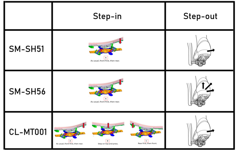 В то время как оригинальные защелки SH51 требуют вхождения «носком вперед», CL-MT001 позволяют велосипедистам защелкиваться в педали несколькими способами. Это означает, что вы можете сначала защелкнуться спереди, а затем сзади, как обычно, или сначала сзади, а затем спереди, или просто наступить прямо на педаль для быстрого и надежного соединения педали и шипа.